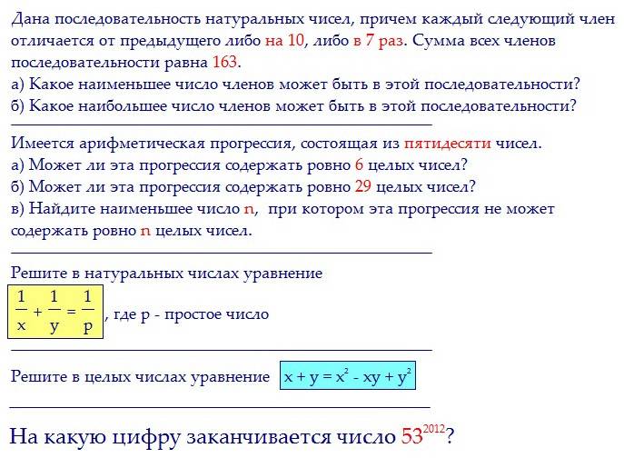 На следующих лекциях разбираем красивые и интересные задания С6. Условия задач перечислены ниже. Наслаждайтесь красотой решения и не бойтеь творить сами! Некоторые задачи мы решим методами второклассника. Не верите? Смотрите лекции!